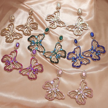 ต่างหูเพชรแบบบาร็อคทรงผีเสื้อต่างหูอัลลอยประดับพลอยเทียมแบบบุคลิกภาพเครื่องประดับหูห้อยขนาดใหญ่สำหรับผู้หญิงทันสมัย